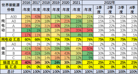 2、世界新能源乘用車的產(chǎn)品結(jié)構(gòu)