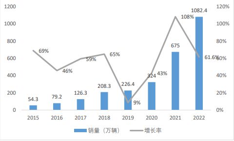 2015-2022 年全球新能源汽車銷量及增長率