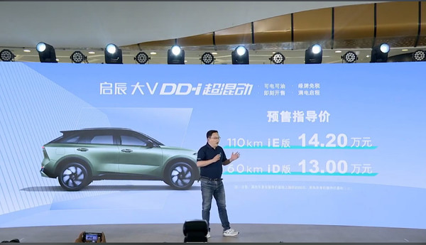 6月3日,東風(fēng)日產(chǎn)啟辰旗下大V DD-i超混動(dòng)正式開啟預(yù)售,新車推出60km iD版及110km iE版兩大版本。其中,啟辰大V DD-i 60km iD版預(yù)售指導(dǎo)價(jià)為13萬元,啟辰大V DD-i 110km iE版預(yù)售指導(dǎo)價(jià)為14.2萬元。對(duì)于東風(fēng)日產(chǎn)啟辰而言,大V DD-i超混動(dòng)的預(yù)售意味著公司將加速新能源轉(zhuǎn)型戰(zhàn)略的落地。