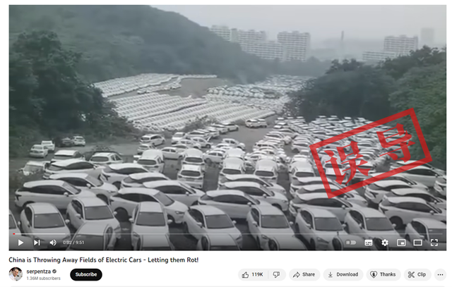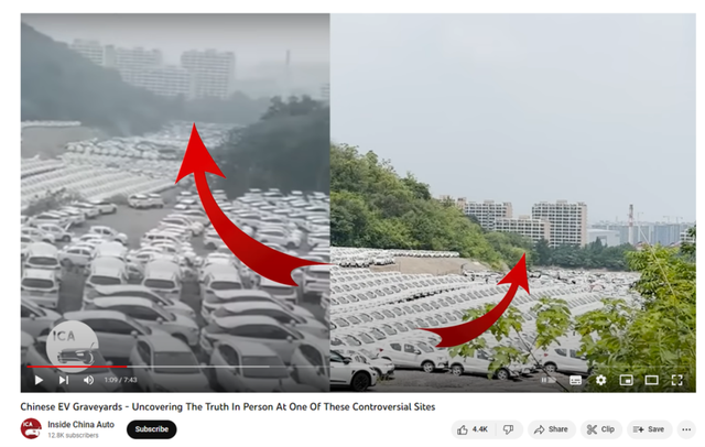 近段時間,推特、Youtube等社交平臺上廣泛流傳說法稱,“中國對電動汽車投資過度”“中國正在丟棄大量汽車,任其腐爛”、“浪費(fèi)”。有關(guān)說法通常配有圖片或視頻,顯示在雜草叢中停放著上百輛汽車。