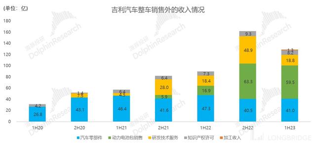 2023 年上半年,公司整車銷售業(yè)務(wù)實(shí)現(xiàn)營收 603 億元,同比增 23%,超出市場預(yù)期 10.8%。在銷量(不含領(lǐng)克、睿藍(lán))同比增長 12% 的但銷量數(shù)據(jù)市場已知的情況下,單車 ASP 超出市場預(yù)期 13.3%,帶動整車銷售業(yè)務(wù)大幅度超預(yù)期。