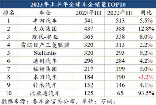 今年上半年,憑借著125萬輛的成績(jī),全球新能源市場(chǎng)兩大巨頭之一的比亞迪,首次躋身全球車企銷量十強(qiáng),超過了常年在榜單中占有一席之地的寶馬集團(tuán)和梅賽德斯-奔馳集團(tuán)。