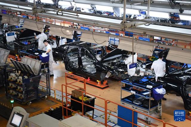 10月9日拍攝的廣東肇慶小鵬汽車智能網(wǎng)聯(lián)科技產(chǎn)業(yè)園內(nèi)的總裝生產(chǎn)線。