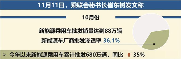 全國(guó)新能源乘用車(chē)10月份批發(fā)銷(xiāo)量88萬(wàn)輛