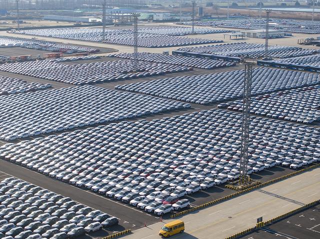 2024年1月24日,江蘇太倉(cāng)港,新能源汽車等待出口。