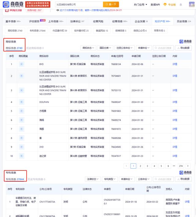 比亞迪的銷量并非僅僅依靠單一車型,而是憑借其豐富的產(chǎn)品線和精準(zhǔn)的市場(chǎng)定位實(shí)現(xiàn)的。根據(jù)商商查資料顯示,目前比亞迪股份有限公司已經(jīng)擁有了2740項(xiàng)注冊(cè)商標(biāo),27844項(xiàng)專利信息。比亞迪純電動(dòng)乘用車銷量和插電式混合動(dòng)力乘用車銷量均取得了顯著增長(zhǎng),展現(xiàn)了其在新能源汽車領(lǐng)域的深厚積累。
