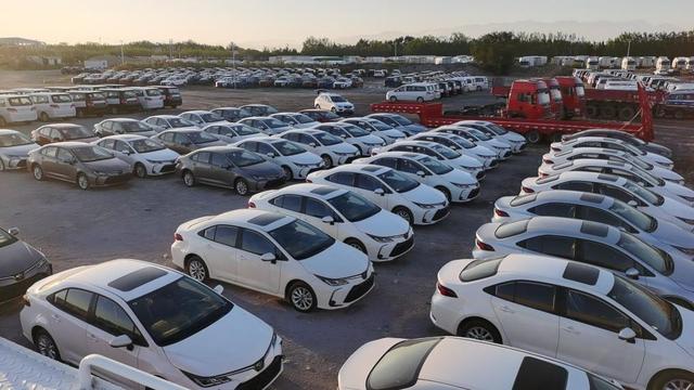 2023年9月,蘇美達百余臺二手新能源汽車整裝待發(fā),從南京發(fā)出,在新疆霍爾果斯口岸集港。(受訪者供圖)