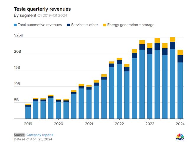 與去年同期相比,特斯拉能源部門的收入增長了7%,達到16.4億美元,而服務和其他收入增長了25%,達到22.9億美元。