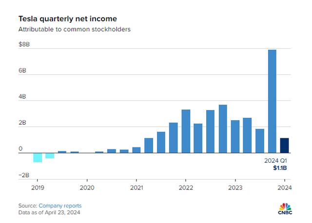 由于對交付疲軟、中國競爭和公司持續(xù)降價的擔憂,特斯拉股價今年暴跌了40%以上。本月早些時候,特斯拉公布第一季度汽車交付量同比下降8.5%。