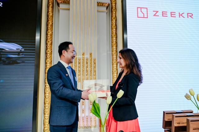 圖四:安聰慧代表極氪與紐交所主席互換上市紀念禮物