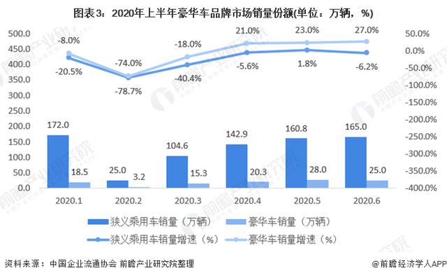 2020年上半年,豪華品牌的總銷量為1480250輛,相比上年同期的1540935輛,同比下降了3.94%。以2019年豪華品牌總銷量3111168輛為基準(zhǔn),如果全年同比下降3.94%,那么銷量將減少超過12萬輛。對于豪華品牌來說,這意味著面臨相當(dāng)大的挑戰(zhàn),因?yàn)樗鼈冊诮^對銷量上本就沒有優(yōu)勢。