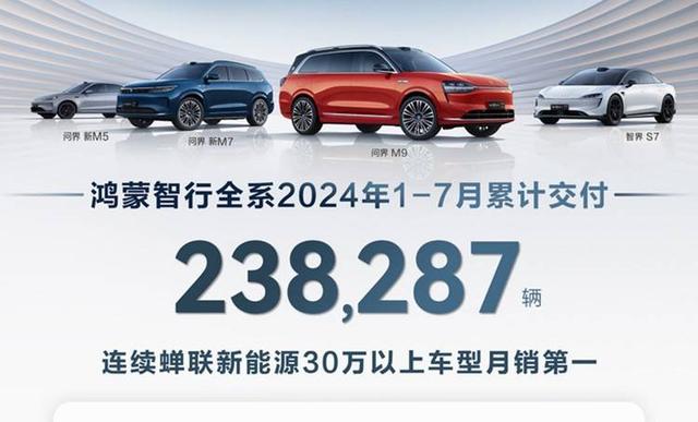 鴻蒙智行在7月交付了44,090輛新車,相比6月有小幅下滑。其中,問界M9勢(shì)頭依舊強(qiáng)勁,7月共交付了18,047輛,問界M7交付了16,562輛,問界M5交付了6,926輛,智界S7則交付了2,555輛。今年1-7月,鴻蒙智行累計(jì)交付量為238,287輛。