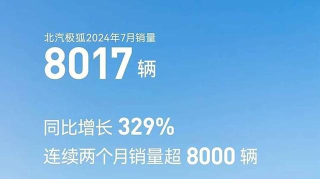 極狐汽車公布了其7月銷量為8017輛,同比增長(zhǎng)329%,表現(xiàn)出了強(qiáng)勁的增長(zhǎng)勢(shì)頭。至此,極狐已連續(xù)兩個(gè)月銷量超8000輛。
