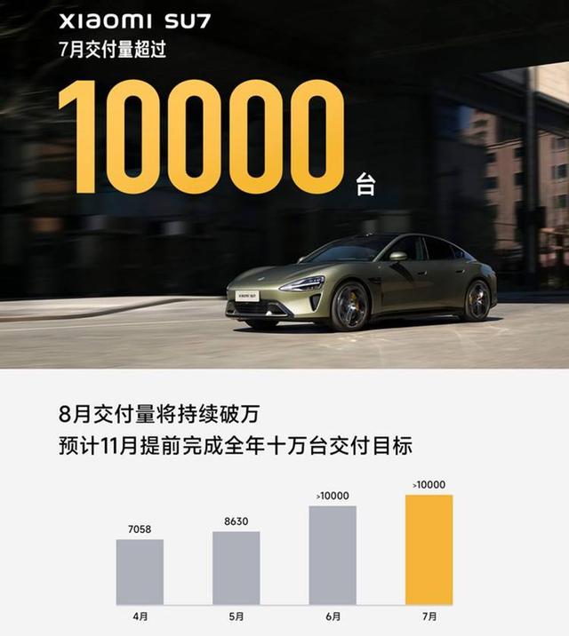 小米7月的交付量超10,000輛,今年累計(jì)交付量已經(jīng)超30,000輛。官方預(yù)測(cè),其8月的交付量將持續(xù)破萬,預(yù)計(jì)在11月提前完成全年十萬輛的交付目標(biāo)。