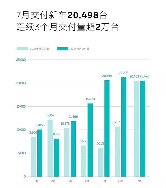 哪吒汽車7月全系共交付11015臺(tái),環(huán)比增長(zhǎng) 8%,2024年1-7月累計(jì)銷量為64,785輛。從今年2月開始,哪吒汽車的單月交付成績(jī)實(shí)現(xiàn)6連漲,升幅穩(wěn)定。