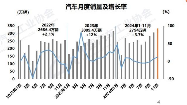 中汽協(xié)數(shù)據(jù)顯示,1~11月,我國汽車產(chǎn)銷分別完成2790.3萬輛和2794萬輛,同比分別增長2.9%和3.7%,汽車產(chǎn)量增速較1~10月擴(kuò)大1.1個百分點(diǎn),銷量增速擴(kuò)大1個百分點(diǎn)。