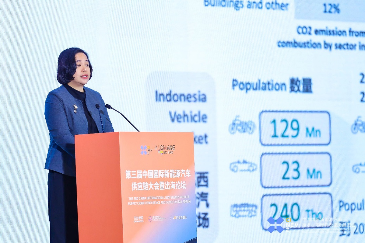 馬來西亞駐華大使館經濟公使 Unny Sankar Ravi Sankar 先生發(fā)言出海政策:印度尼西亞印度尼西亞駐華大使館經濟公使銜參贊Elizani T. X. Nadia Sumampouw女士在分享中提到,2024年印尼經濟增長穩(wěn)定,在全球電動汽車供應鏈中,與中國在鎳加工、電池及汽車生產領域已開展合作。為實現(xiàn)2050年凈零排放目標,印尼計劃到2030年推廣200萬輛電動汽車和1200萬輛電動摩托車。憑借豐富的鎳資源,印尼在電動汽車供應鏈中占據(jù)重要地位,其鎳產品出口額在2017 - 2024年增長10倍,還運營著東南亞最大的LFP生產廠。同時,印尼政府出臺稅收優(yōu)惠、擴大充電網(wǎng)絡等多項政策,并有更多激勵政策支持中國電動汽車制造商投資。
