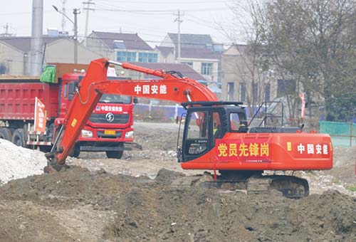 2月21日,工人們戴著口罩在工地上進(jìn)行作業(yè)、挖掘機(jī)忙著挖掘碎石和泥塊,渣土車來來往往清運(yùn)著石料……繁忙的景象打破了多日沉寂,由中國安能第二工程局常州分公司承建的新孟河延伸拓浚工程常州新北區(qū)河道八標(biāo)段正式復(fù)工。