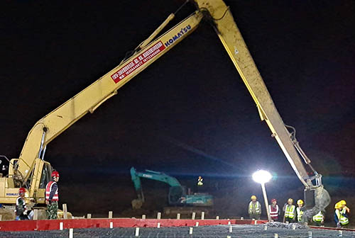 針對PPP項目的特點難點,項目部持續(xù)加強與駐地政府、聯(lián)合體成員單位、協(xié)作單位及供應商等單位的溝通聯(lián)系,尤其是針對應急項目邊設計邊施工、出圖計劃滯后、設計圖與現(xiàn)場情況不符制約施工的實際,著力與政府、設計、監(jiān)理等參建單位構建聯(lián)絡機制,維持良好關系,相互協(xié)作解決問題,最大限度減少客觀條件因素的影響,成功協(xié)調(diào)解決了節(jié)制閘項目放水和料場等難題,保證了水位從36m降到33m,提前1個月進行圍堰填筑,10月1日實現(xiàn)圍堰全部合龍,為節(jié)制閘基坑施工提供了條件。