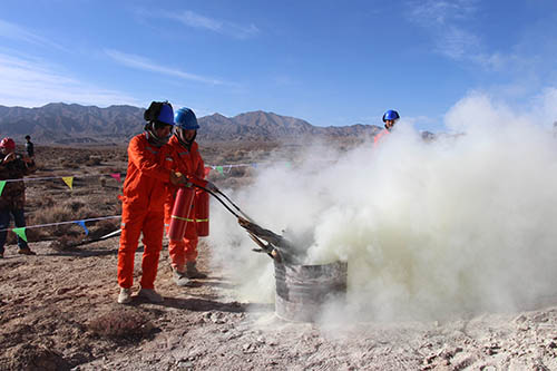 演練活動分為演練前的安全知識培訓和現(xiàn)場應急處置演練兩個階段進行。首先由項目安全負責人結(jié)合本工程特點,講述了基坑施工窒息、消防滅火、觸電救援安全重點部位及可能引發(fā)事故的原因,現(xiàn)場使用的安全工器具的正確使用;消防器材及各器材的特征和適用范圍、火災的撲救方法;觸電后應采取的措施等。培訓中還列舉了各類發(fā)生事故的典型案例,用“血的教訓”警示大家高度重視意外傷害、設備著火和人員觸電安全等,要求工程參建人員積極主動做好個人及現(xiàn)場施工中各項安全工作。