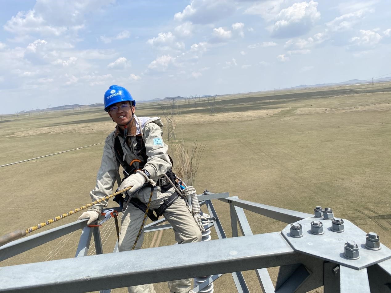 張喜峰、孫思豪,一位是高空檢修I班班長,一位是高空檢修II班的專責(zé)工,同樣為了檢修工作被阻截了回家的路,他們主動(dòng)加入了應(yīng)急檢修隊(duì)伍,為線路安全穩(wěn)定運(yùn)行做好保障。張喜峰的孩子剛?cè)龤q,平時(shí)因?yàn)楣ぷ骶团c孩子相處不多,現(xiàn)在更因?yàn)橐咔楸环指粼趦傻兀刻熘荒芡ㄟ^視頻參與孩子的成長。孫思豪的妻子在烏海工作,今年剛結(jié)婚,妻子趕來錫林浩特看望丈夫,但因?yàn)檎煞蛟谖鳛跗靺⒓訖z修不能返回錫林浩特,奔赴千里,卻近在咫尺而不能相見。