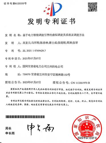 8月1日,國網蘭州供電公司供電服務指揮中心自主研發(fā)的《基于電力智能調度引擎的虛擬調度員系統(tǒng)及調度方法》榮獲國家知識產權局頒發(fā)的發(fā)明專利證書。