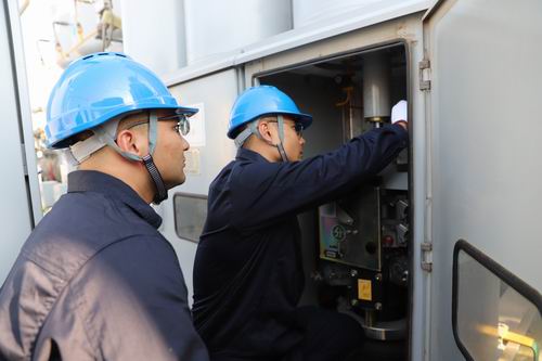 商丘供電公司集中專業(yè)技術(shù)力量,全力開展秋季檢修工作,確保設(shè)備安全穩(wěn)定運行。圖為10月10日,該公司人員對220千伏華源變電站進行設(shè)備檢修。(王輝 趙沖)