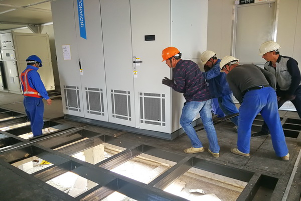 本次設(shè)備安裝主要包括高壓變頻系統(tǒng)、隔離變壓器、開關(guān)柜、計(jì)量柜、涌流抑制柜、接地電阻柜等設(shè)備安裝工作。當(dāng)天,全部設(shè)備均安裝到位,為后續(xù)整個(gè)岸電系統(tǒng)的調(diào)試、試驗(yàn)、驗(yàn)收等打下了堅(jiān)實(shí)基礎(chǔ)。