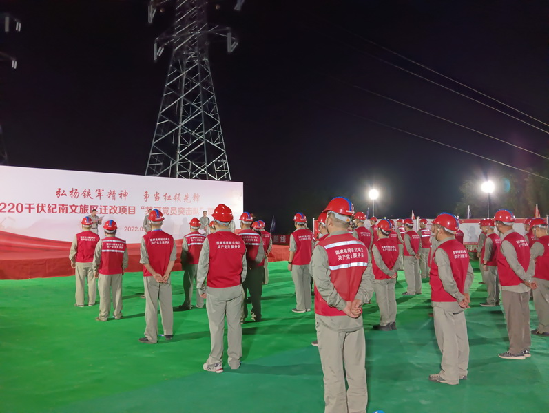 2022年9月15日22時(shí)30分,荊州文旅區(qū)220千伏遷改項(xiàng)目“三跨大會(huì)戰(zhàn)”,“共產(chǎn)黨員突擊隊(duì)”誓師大會(huì)現(xiàn)場(chǎng)人頭攢動(dòng),施工團(tuán)隊(duì)統(tǒng)一著裝,個(gè)個(gè)精神抖擻,排列方陣,整齊劃一,重型施工機(jī)械有序排列,蓄勢(shì)待發(fā)。