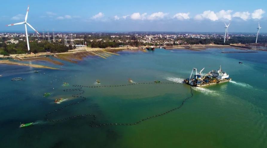 500千伏海南聯(lián)網(wǎng)工程海纜牽引船開展海纜敷設(shè)作業(yè)