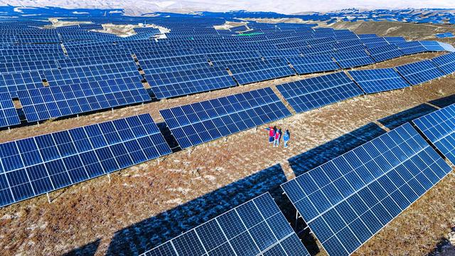 白銀市景泰縣蘆陽鎮(zhèn)的群山上,光伏場站如一片閃耀的藍(lán)色海洋,綿延無盡。白銀供電公司供圖