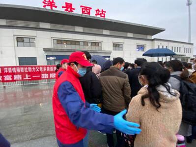 青年戰(zhàn)“疫”突擊隊(duì)攜帶一次性雨衣、純凈水等物資前往洋縣西站,參與了運(yùn)送農(nóng)民工復(fù)工返崗高鐵專列的志愿服務(wù)活動,不畏風(fēng)雨積極助力復(fù)工復(fù)產(chǎn)。