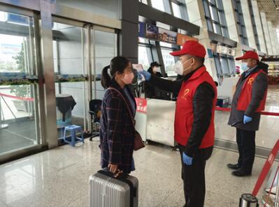 上午9時(shí),20余名志愿服務(wù)隊(duì)員頭戴“小紅帽”、身穿“紅馬甲”,在城固縣柳林機(jī)場主動擔(dān)當(dāng)路口值守、旅客體溫測量、防控知識宣傳、疫情排查等工作。