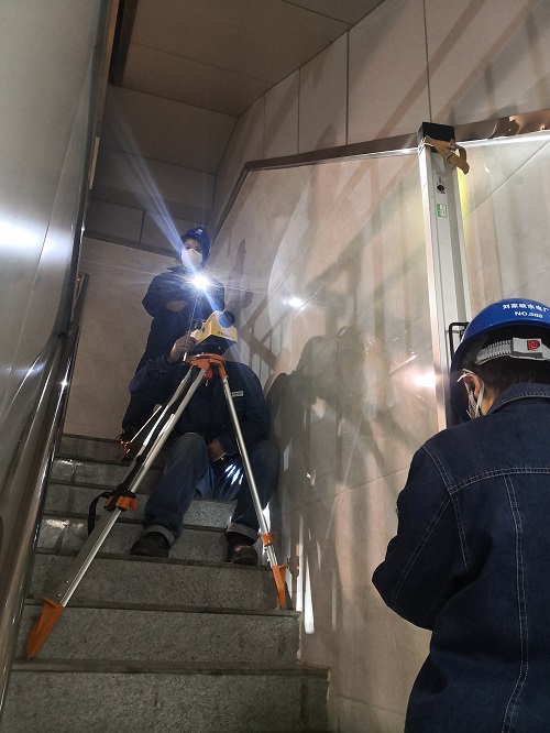 水工分場觀測班接到新的工作任務,配合機械分場完成1號機組中性點高程測量工作。當時正值觀測班日常觀測任務開始之際,時間、人員都很緊張,李亞洲作為本班組重點培養(yǎng)青年,主動承擔起司儀工作,將1號機組推力層標點高程通過廠房上游側樓梯引至中性點出口處。由于樓梯較窄,階梯高度較大,3米水準尺無法使用,只能通過趴、跪、坐等姿勢看儀器,身形偏瘦的他,多次“搬站”將高程引下,沾滿灰塵的衣服也擋不住他陽光的笑臉,他的“委曲求全”確保了此次測量數(shù)據(jù)的精確性。