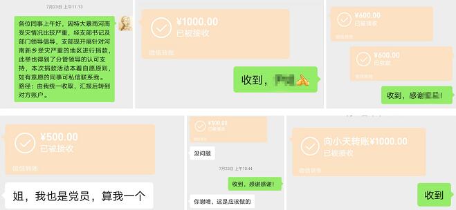 據(jù)悉,河南遭遇特大暴雨,多地發(fā)生嚴重洪澇災(zāi)害。河南省輝縣市常村鎮(zhèn)氈匠屯村遭受洪澇災(zāi)害,農(nóng)作物受災(zāi),經(jīng)濟受損,村民們生活與人身安全受到影響。這些天,國網(wǎng)信通產(chǎn)業(yè)集團國電通規(guī)劃與計劃管理業(yè)務(wù)事業(yè)部黨支部黨員們每天都留意新聞報道,關(guān)注河南災(zāi)情,希望能為河南做點什么。得知輝縣市常村鎮(zhèn)氈匠屯村受災(zāi)情況后,迅速響應(yīng),通過河南籍員工與當(dāng)?shù)攸h組織取得聯(lián)系,發(fā)出捐款倡議。倡議一經(jīng)發(fā)出,便得到了黨支部黨員、發(fā)展對象和員工的積極參與,迅速募捐到了11800元善款。在輝縣市常村鎮(zhèn)氈匠屯村遭受洪災(zāi)的關(guān)鍵時刻,迅速將善款打給他們,為當(dāng)?shù)匕傩仗峁┰?/p>