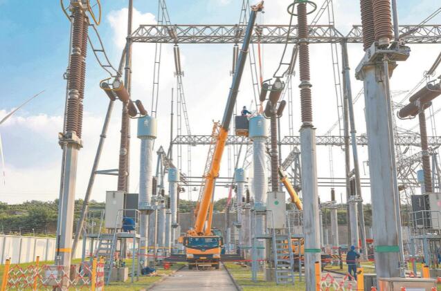 黨員服務隊隊員在500千伏馬寺變電站更換斷路器電流互感器。