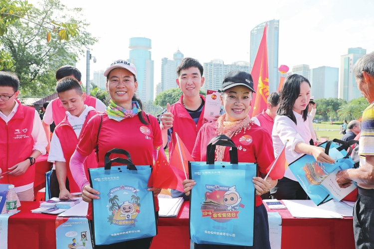 12月1日,海南省暨??谑?019年“憲法宣傳周”活動(dòng)在??谑腥f(wàn)綠園啟動(dòng),??诠╇娋衷诨顒?dòng)現(xiàn)場(chǎng)開(kāi)展“依法用電、安全用電”宣傳。楊永光 攝