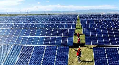 國網(wǎng)青海電力員工在海南州光伏產(chǎn)業(yè)園區(qū)檢查設(shè)備運(yùn)行情況。