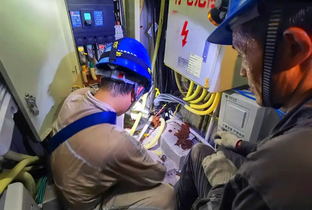 國家電網(wǎng)員工在居民小區(qū)電井中排查隱患。