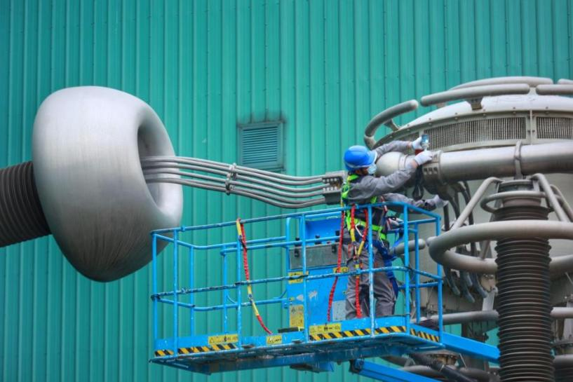 ±1100千伏特高壓古泉換流站年度檢修現(xiàn)場(chǎng)。