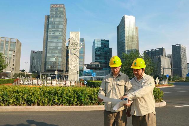 國網(wǎng)北京亦莊供電公司員工在北京經(jīng)開區(qū)中關村國家自主創(chuàng)新示范區(qū)巡檢重點線路,保障高溫天氣下電網(wǎng)運行平穩(wěn)。