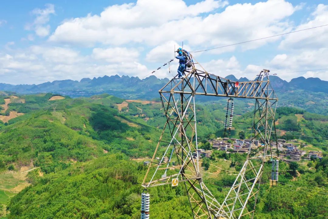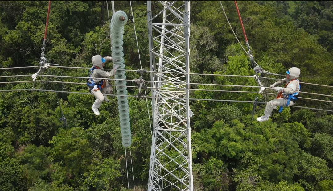 南方電網(wǎng)超高壓公司百色局運維人員開展500千伏線路帶電作業(yè),全力確保迎峰度夏期間西電東送大通道供電穩(wěn)定。(玉建生 攝)