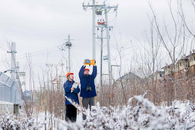 國網山東淄博供電公司員工巡檢10千伏線路,確保電采暖臺區(qū)可靠供電。