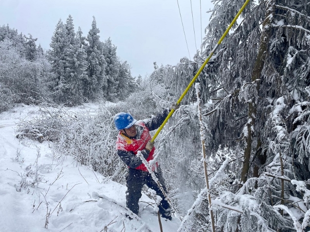 國網(wǎng)重慶電力員工清理10千伏桐楠線樹障。