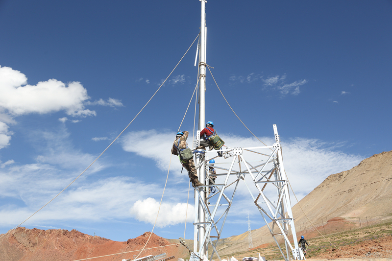 “目前我們完成了蘇里鄉(xiāng)98%的下戶線接入,剩下沒接入的用戶在轉(zhuǎn)場或者去了夏窩子。等他們一回來就能接入了。”工程項目負(fù)責(zé)人竇健說。在蘇里鄉(xiāng)組塔的施工階段,78~94號鐵塔最高,在4300米以上,塔材和石料全憑騾隊馱運。施工高峰期時16匹騾子分成兩隊,分別從央隆和蘇里雙向馱運。眼下,鐵塔塔基澆筑已完成100%,已組立72基。