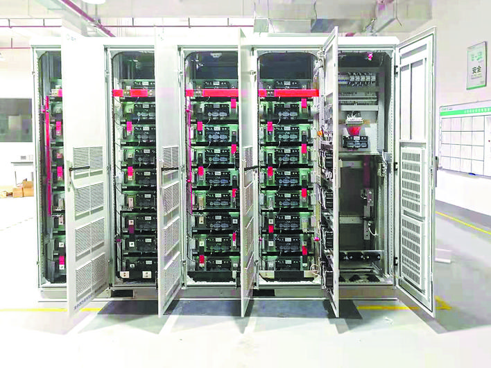為確保項目可行性,攻關(guān)團隊先在實驗室完成50千瓦樣機各項功能試驗后,再進(jìn)行500千瓦超級電容微儲能裝置的研制。該裝置主要由超級電容模塊、電力電子變流器和快速功率控制器三部分組成。快速功率控制器可在10毫秒內(nèi)完成頻率檢測,電力電子變流器可在2毫秒內(nèi)實現(xiàn)有功功率的快速、精準(zhǔn)支撐,并且電力電子變流器集成了電網(wǎng)諧波主動抑制、無功功率靈活調(diào)節(jié)功能,讓該裝置成為集儲能與電能質(zhì)量管理于一體的新型補償裝置。今年2月7日,這套變電站超級電容微儲能裝置投入使用。