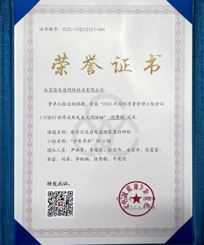 中國電力網(wǎng)訊(通訊員:張俊偉) 4月17日獲悉,國網(wǎng)信通產(chǎn)業(yè)集團(tuán)國電通“護(hù)電奇兵”QC小組成果《數(shù)字化反竊電監(jiān)測裝置的研制》在2023年國際質(zhì)量管理小組會(huì)議(ICQCC)推薦成果發(fā)表交流活動(dòng)中獲得優(yōu)秀獎(jiǎng)。