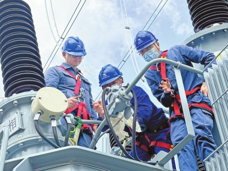 8月7日,在浙江省余姚市220千伏朗霞變電站基建施工現(xiàn)場,寧波送變電建設(shè)有限公司的施工現(xiàn)場負(fù)責(zé)人金祖會向青年員工演示氣體絕緣全封閉組合電器安裝步驟,幫助他們提升實(shí)操能力。今年,寧波供電公司依托工程建設(shè)開展23項(xiàng)培訓(xùn)課程,營造業(yè)主、設(shè)計、施工、監(jiān)理全方位基建“大人才”培養(yǎng)環(huán)境,為基建模塊化、綠色化、機(jī)械化、數(shù)字化轉(zhuǎn)型培養(yǎng)高素質(zhì)管理人才和技能骨干。