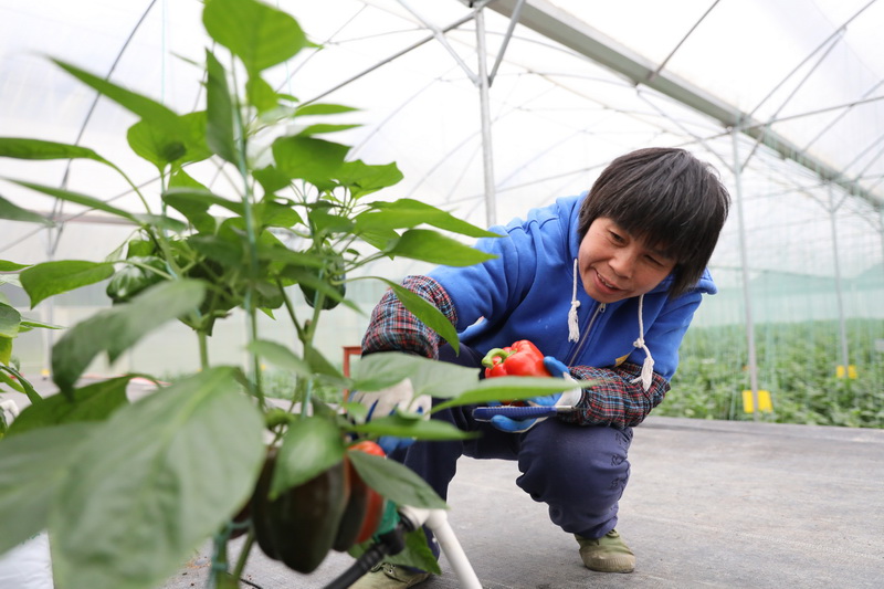 小婷媽媽在大棚里種植彩椒。孫嘉彪 攝