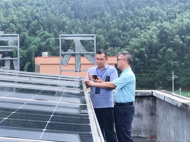 除了建設(shè)大棚蔬菜基地,高鋒還一直在琢磨,如何結(jié)合電網(wǎng)企業(yè)的專業(yè)優(yōu)勢促進(jìn)打贏脫貧攻堅戰(zhàn)。經(jīng)過調(diào)研,高鋒帶領(lǐng)駐村工作隊積極探索適合林洞村發(fā)展的扶貧項目,多次與南方電網(wǎng)能源公司溝通,通過實地調(diào)研和可行性分析,結(jié)合林洞村日照較長、光資源豐富的特點,最終決定在林洞村開展光伏扶貧項目。2017年建成了裝機容量30kW的一期光伏項目,2018年9月裝機容量70.5KW的光伏發(fā)電二期項目也竣工并網(wǎng)發(fā)電,至此,在駐村工作隊的協(xié)調(diào)下,林洞村共建設(shè)了光伏電站100kW。